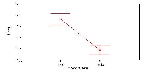 Fig 18- Comparison of unevenness percent of ring & siro core spun yarns Considering performed comparisons we can say that: