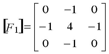 In order to determine the geometric sizes of the spliced joint yarns, we performed an image analysis of the yarn joints with the help of a measuring work-stand, composed of a Panasonic Nikon-800 video camera and a Steddy-T type stereoscope microscopefrom Ceti and a computer. The view of spliced joints which was registered on the monitor was subjected to digital image analysis with the help of Microscan 1.3 software. In order to achieve better differentiation of both the brightness and colour of the observed yarn specimens, we used an high-pass Laplace filter to emphasise differences between the brightness and colour of adjacent pixels [25,26]. Three kinds of Laplace filter exist, differentiated by filter mask and therefore by the degree of filtration. We were able to choose the kind of filter mask F1, F2 and F3 on the basis of the automatic command ‘Laplace Transform’; the matrixes of these filters had the following form: